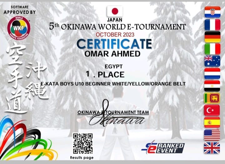 01Dec 2023 by nls We proudly celebrate for the second time the success of our Nefertarian player Omar Ahmed Karim for U5 Egyptian achieving 1st place in the Okinawa world tournament for E-Kata. Congratulations You made us proud